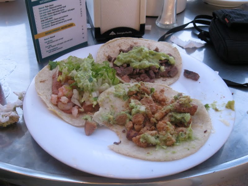 Here we are eating at a really simple Mexican restaurant, Taco Break, which ended up being very delicious! The shrimp and beef tacos were awesome!